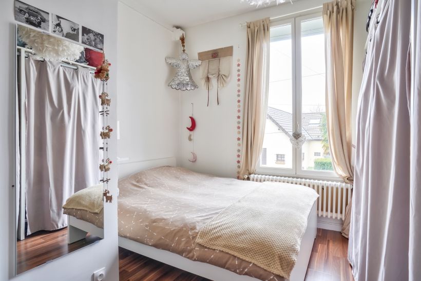 La chambre offre une vue saisissante sur Argenteuil, la majestueuse silhouette de La Défense se dresse au loin créant ainsi un cadre enchanteur pour les moments de détente.