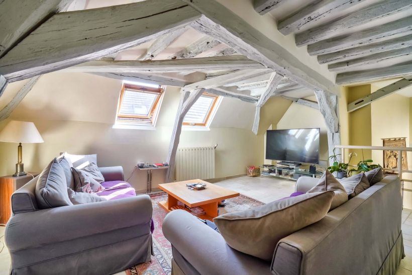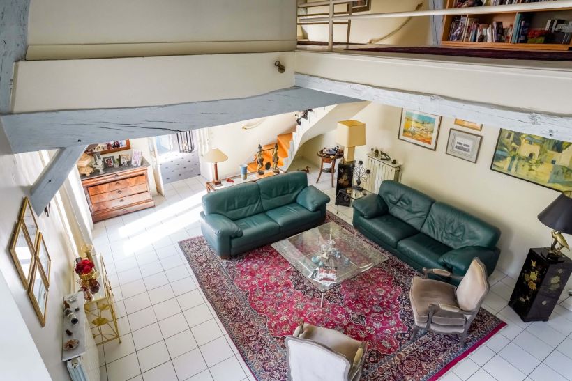 À l'étage, un salon TV offre un espace supplémentaire pour la détente.