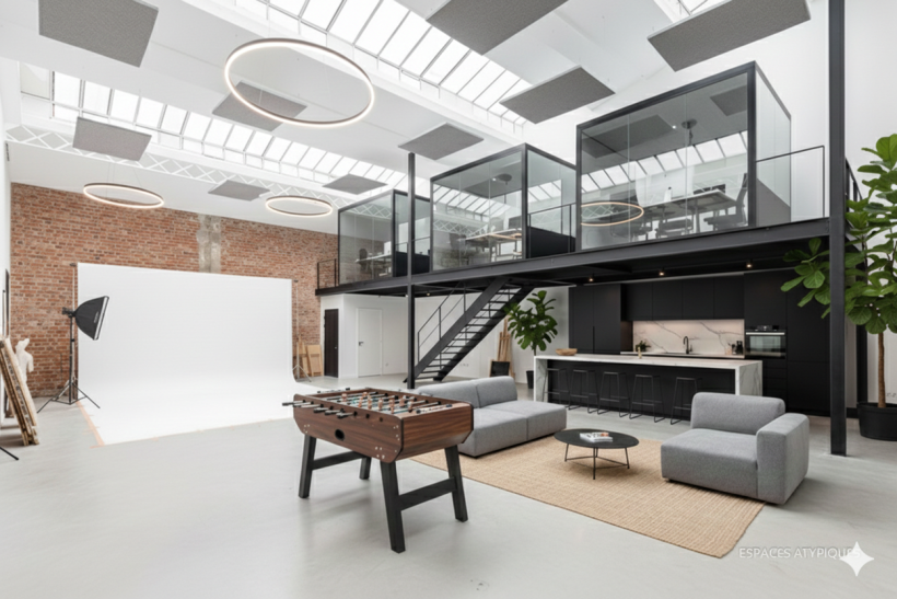 • un espace détente distinct (salon, babyfoot, zone informelle),