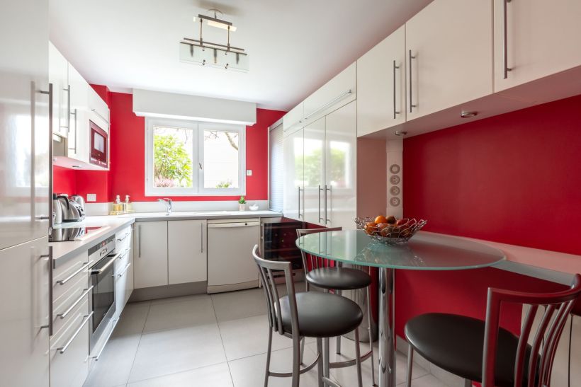 La cuisine indépendante, aujourd’hui séparée, présente un fort potentiel d’aménagement et pourra aisément être repensée pour créer une vaste pièce de vie contemporaine tournée vers le jardin.