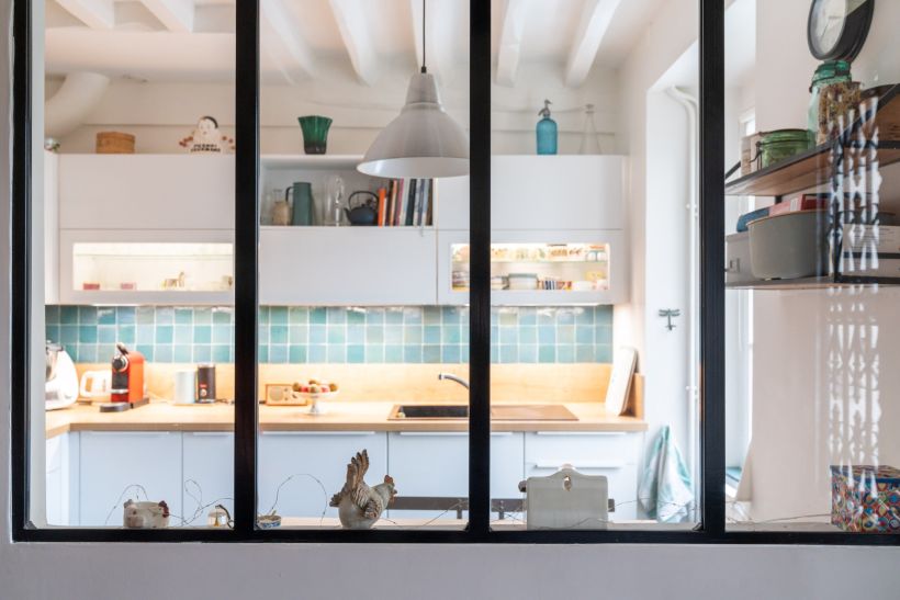 Cette distribution atypique, héritée du bâti ancien, donne à la maison un rythme particulier, fluide et naturel, sans jamais contraindre les usages.