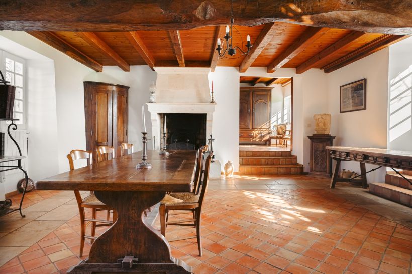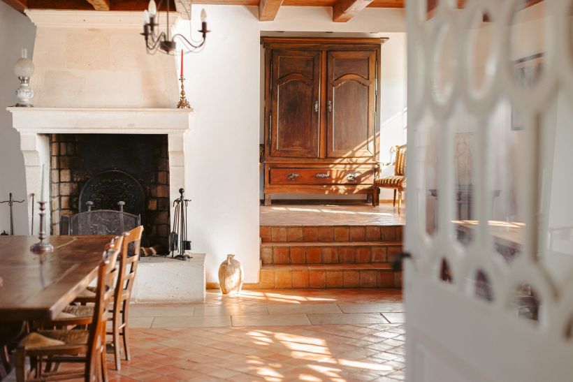 Entièrement restaurée avec exigence et respect de son authenticité, la longère charentaise développe environ 350 m² habitables. Les volumes sont généreux et la lumière omniprésente.