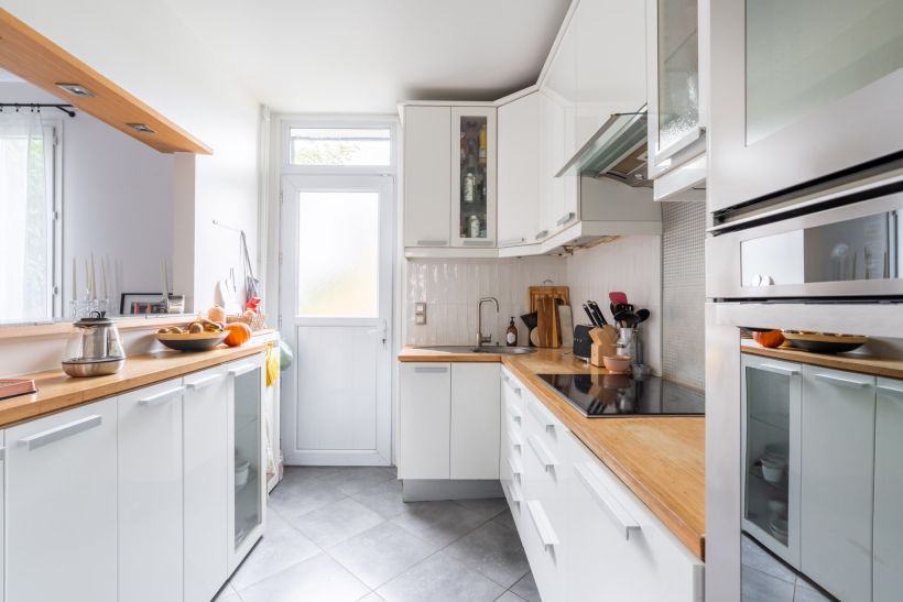 Derrière sa façade de caractère, typique de l’architecture pavillonnaire de l’entre-deux-guerres, la maison a fait l’objet d’une rénovation complète, menée avec soin tant sur les extérieurs que sur les espaces intérieurs. L’ensemble compose aujourd’hui un lieu de vie harmonieux où se mêlent éléments d’origine et aménagements contemporains.