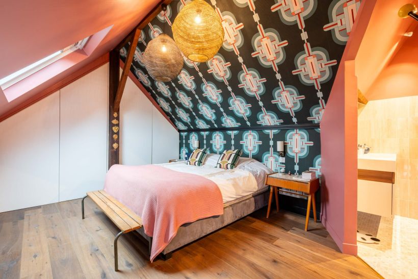 Au dernier étage, une suite comme suspendue, pensée comme un refuge : salle de bain, intimité totale et terrasse de 20 m², à l’abri des regards… un véritable cocon.