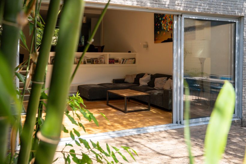 À l’extérieur, la terrasse et le jardin exposés plein sud prolongent les espaces de vie et offrent un cadre idéal pour les moments de détente.