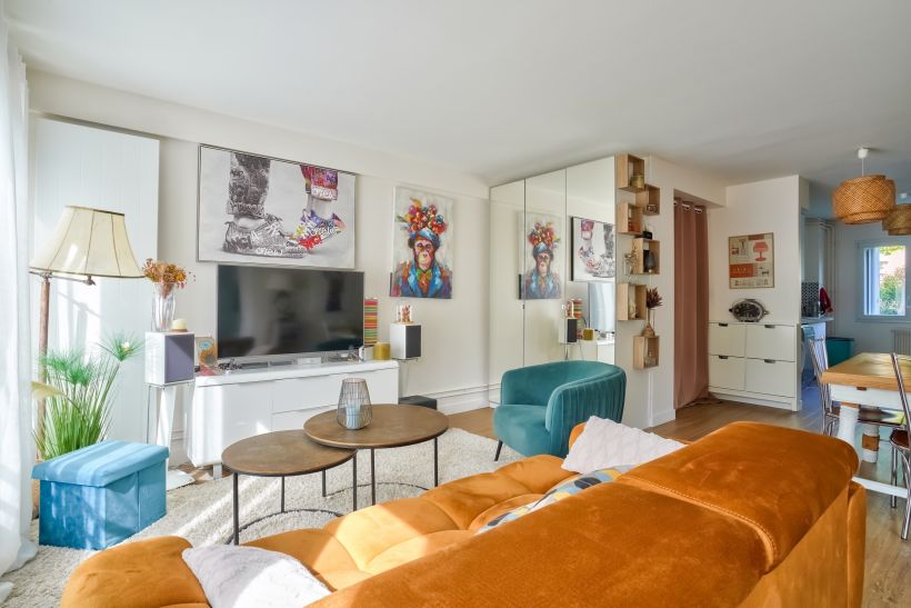 Cet immeuble de 1950 abrite en son rdc surélevé un appartement de 65 m2 à la circulation fluide, idéalement situé à La Garenne-Colombes, quartier Château-Ridel.